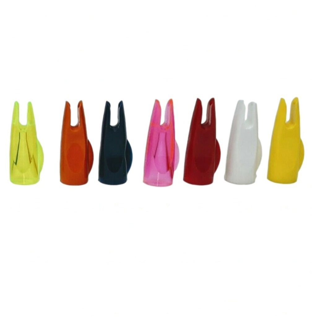 Bohning's Classic Nock is perfect for wood, fiberglass, and swedged aluminum arrows. The Classic Nock features a raised index and is available in 5/16" and 11/32" sizes. The average weight of the 5/16" is 10 grains, and the average weight of the 11/32" is 13 grains. The Classic Nock's tapered .115" (2.92mm) throat provides the ideal soft snap onto traditional bowstrings. Proudly manufactured at the Bohning Factory in Lake City, Michigan, United States.