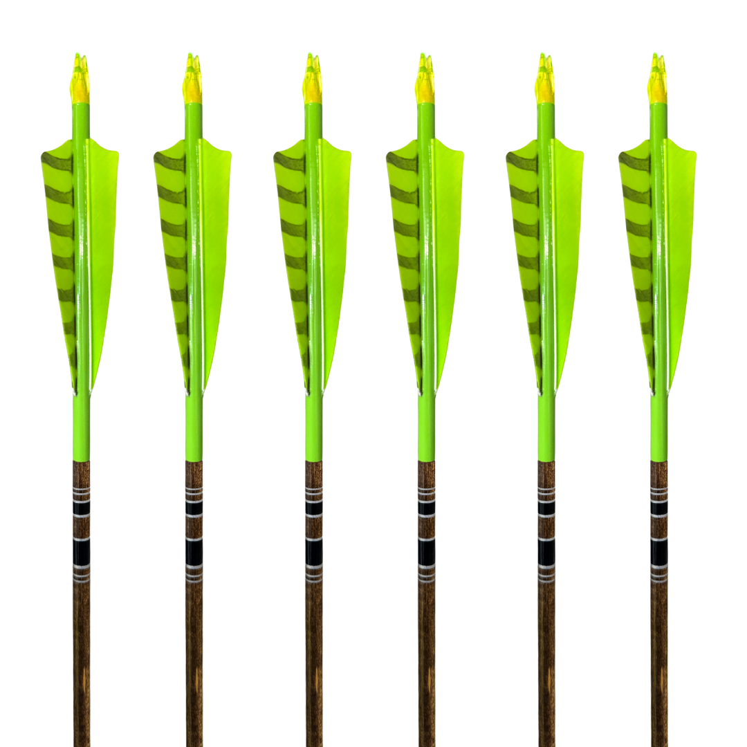 Crafted for traditional archers who value both performance and craftsmanship. These arrows are made from premium cedar shafts. Each shaft is electronically spined for accuracy and sealed with Gasket Lacquer, creating a dense, hard, and durable finish.