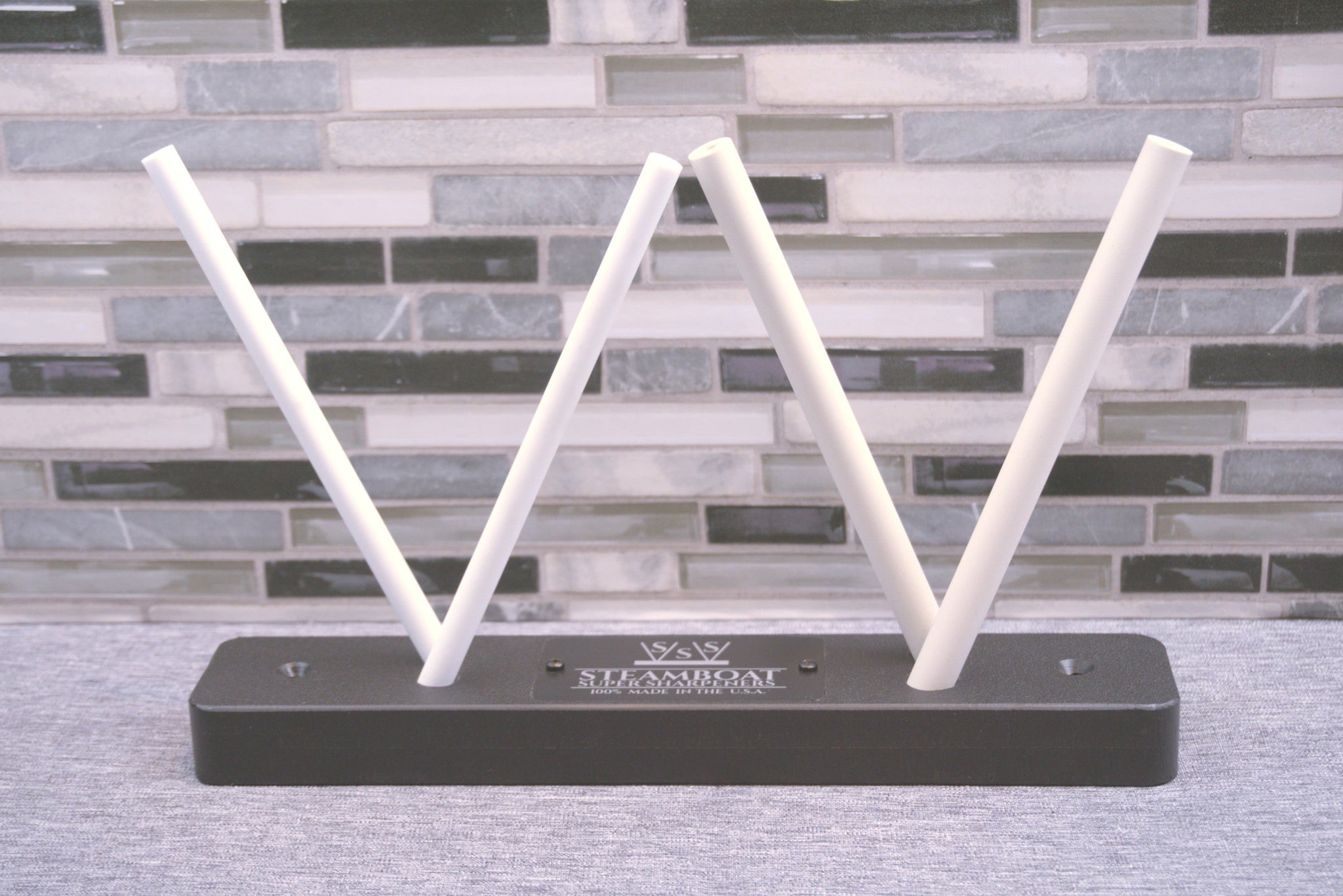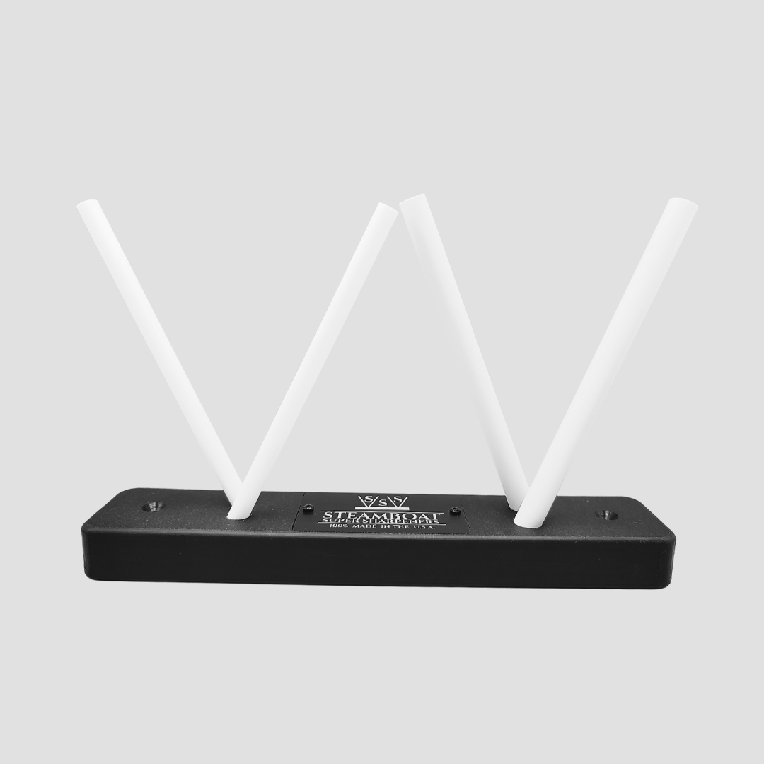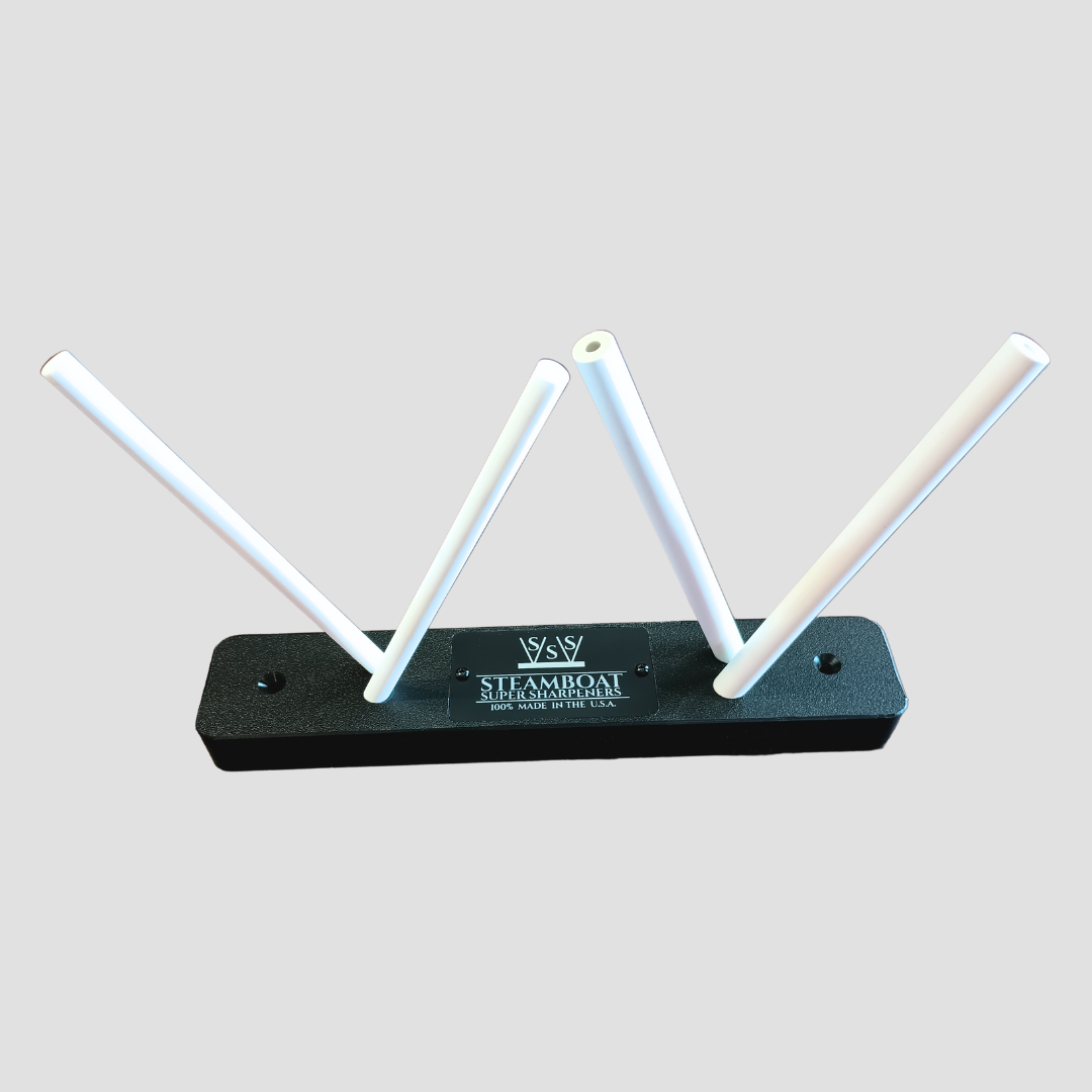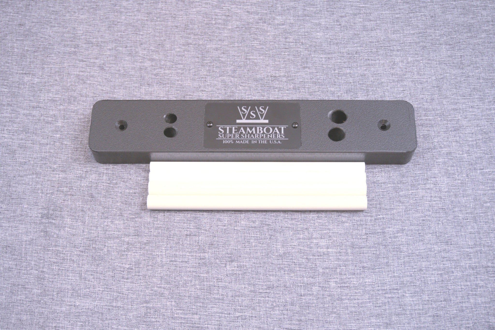 The Harvester Ultimate consists of two standard 1/2 inch ceramic rods and two premium 3/8 inch rods that are made of aluminum oxide. The base is made of a copolycarbonate material that makes it ideal for wet environments. Designed for the butcher shop, the fish cleaning station, and the industrial/commercial kitchen, this sharpener is very durable and it will clean up easily. There are two holes drilled in the base to allow you to use stainless steel screws to attach it to your table, if desired. Because this sharpener is part of the Ultimate series, you'll be able to achieve a super sharp blade in no time at all!