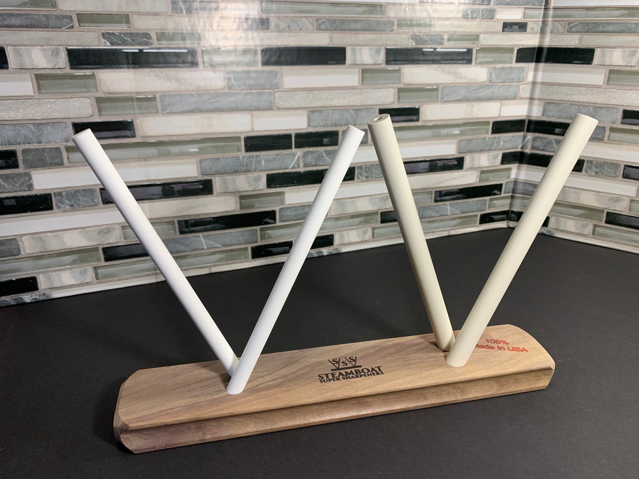 The Ultimate consists of two standard 1/2 inch rods and two 3/8 inch aluminum oxide rods. Using this sharpener you can achieve a razor sharp blade in just a couple of minutes!
