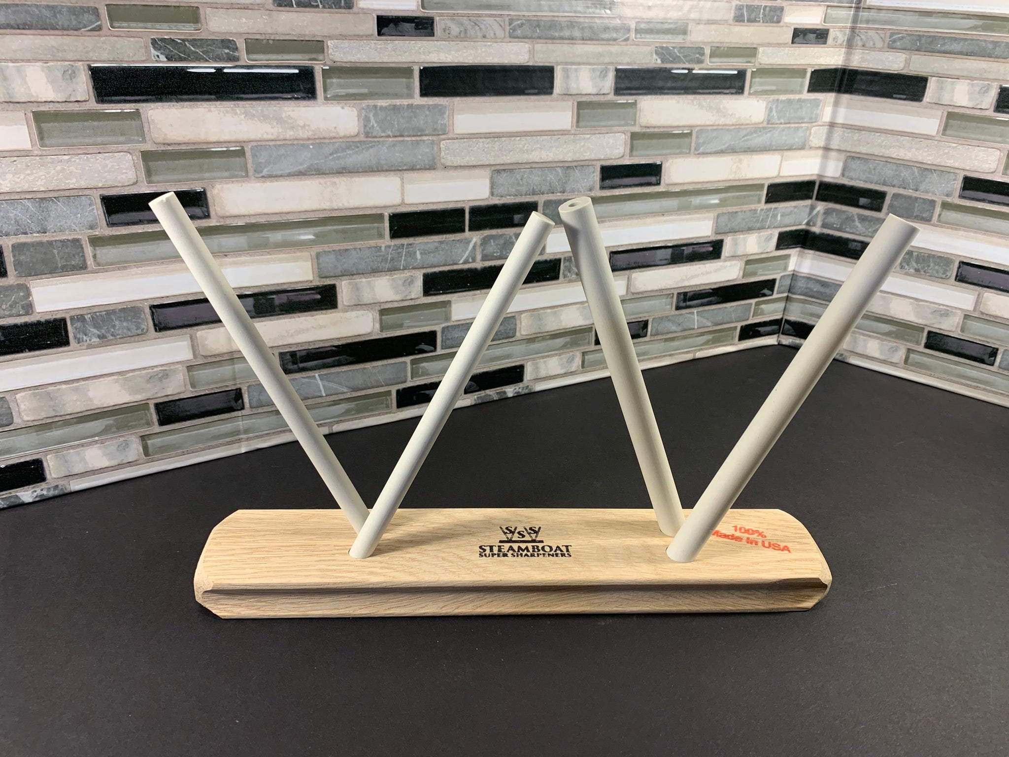 The Ultimate consists of two standard 1/2 inch rods and two 3/8 inch rods that are made of aluminum oxide. Using this sharpener you can achieve a razor sharp blade in just a couple of minutes!