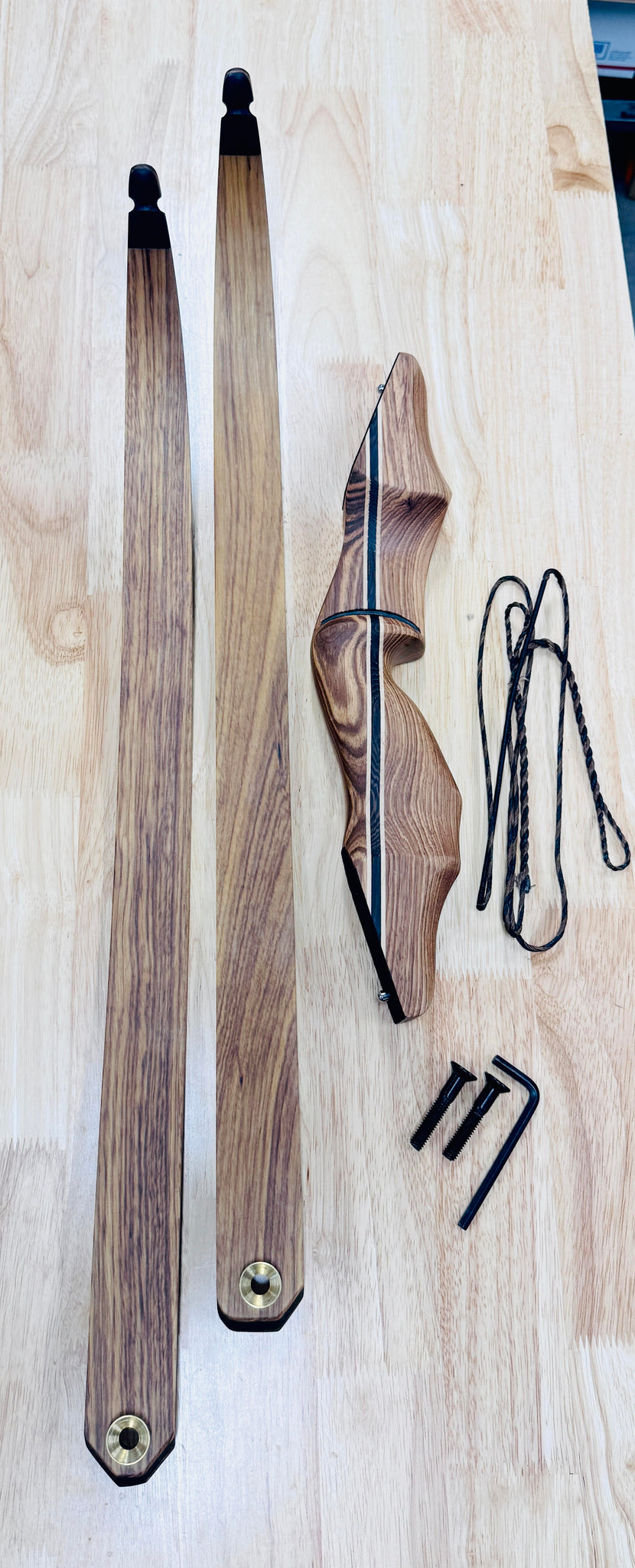 Limbs: Made from exotic hardwoods with clear fiberglass laminations. The limbs feature reinforced tips, making them FastFlight® compatible. Single pin and bolt limb attachment.